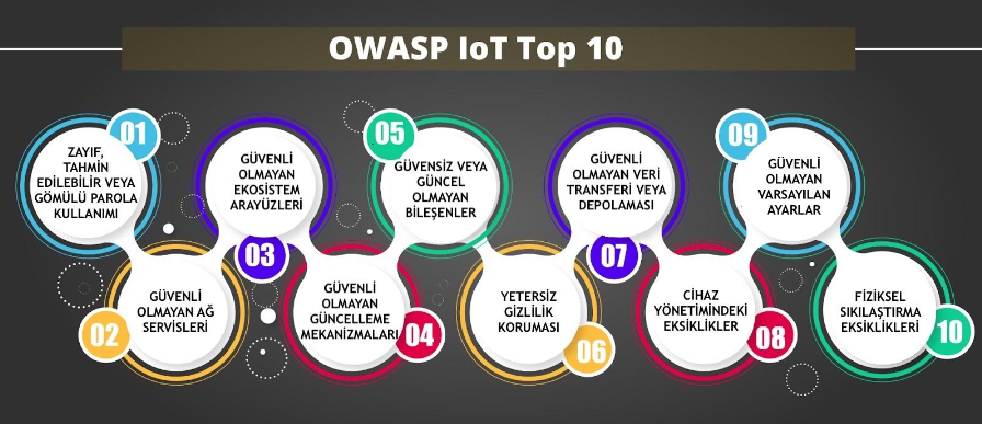 IoT teknolojisinin yaygınlaşması, iş süreçlerini kolaylaştırmanın yanı sıra siber güvenlik risklerini de beraberinde getiriyor. Bu nedenle, Open Web Application Security Project (OWASP) tarafından geliştirilen OWASP IoT Top 10 projesi, IoT teknolojilerinde en sık karşılaşılan güvenlik risklerini belirlemeyi amaçlamaktadır.